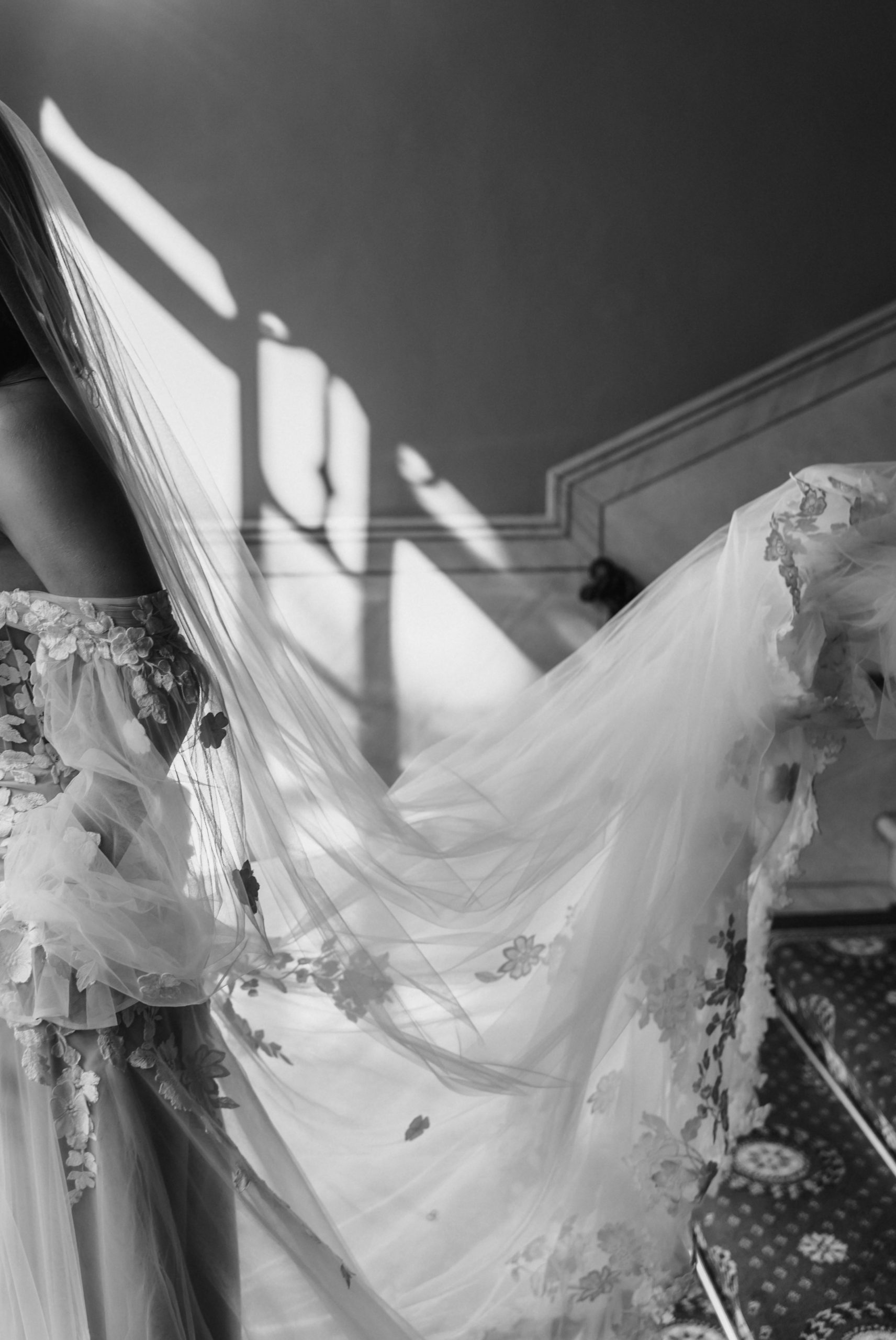 The day began at Grand Hotel Tremezzo, where Lauren got ready in a quiet suite filled with natural light. Her look—styled by Rita—felt lifted from the pages of an editorial: soft waves, luminous skin, and a gown that moved with intention.
