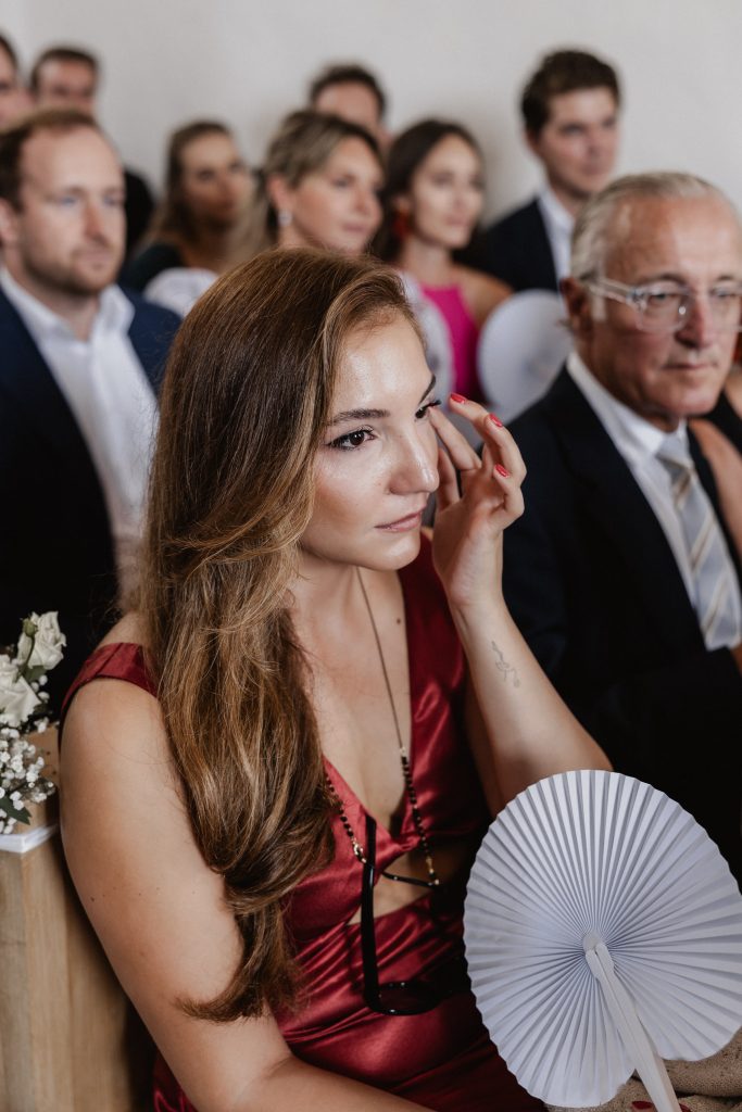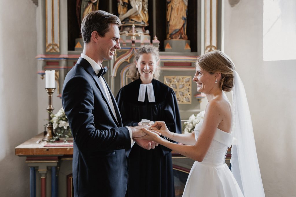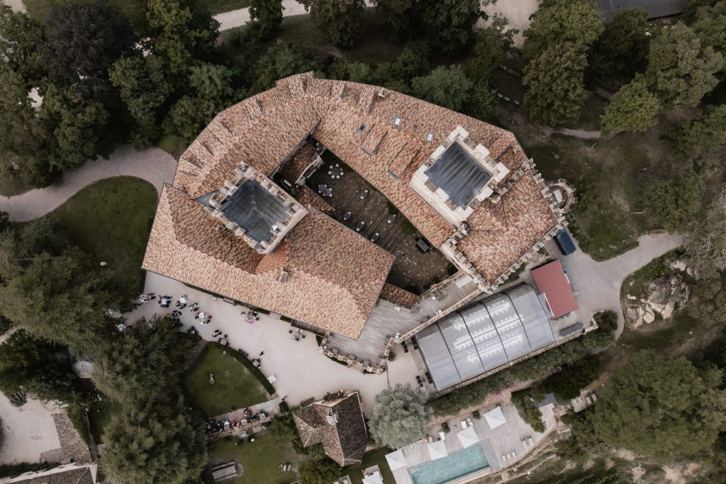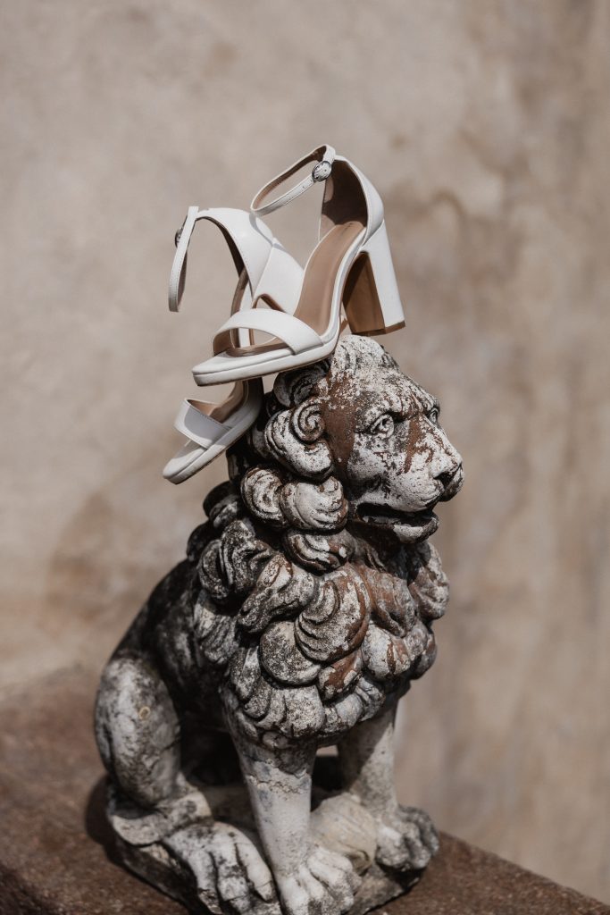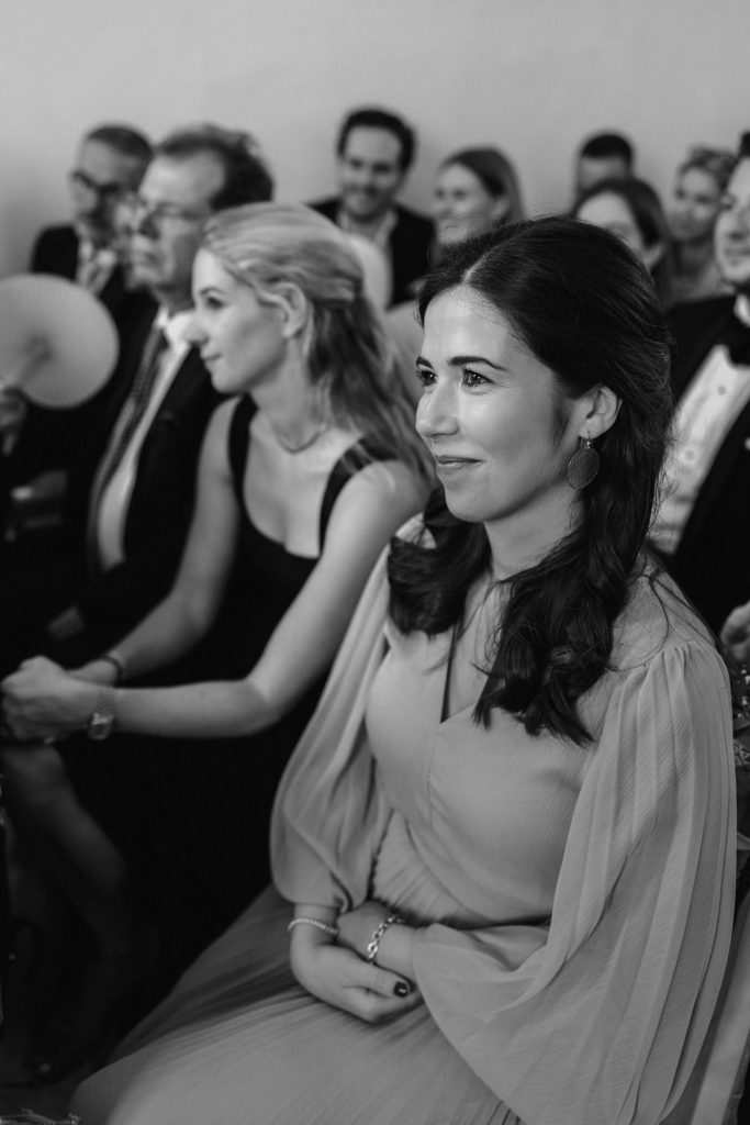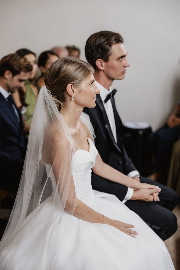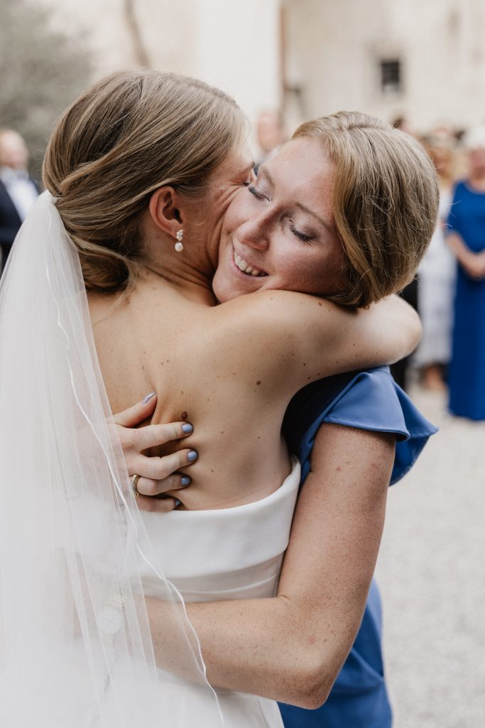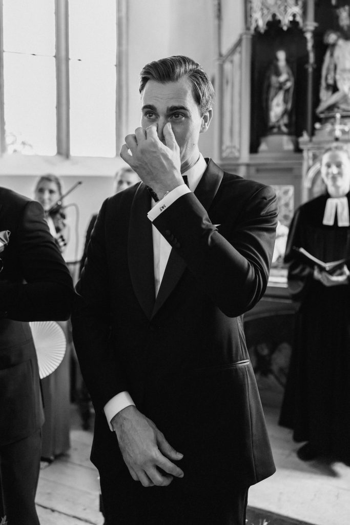 The ceremony took place in the small chapel just in front of the castle—intimate, emotional, framed by soft florals and weathered stone.