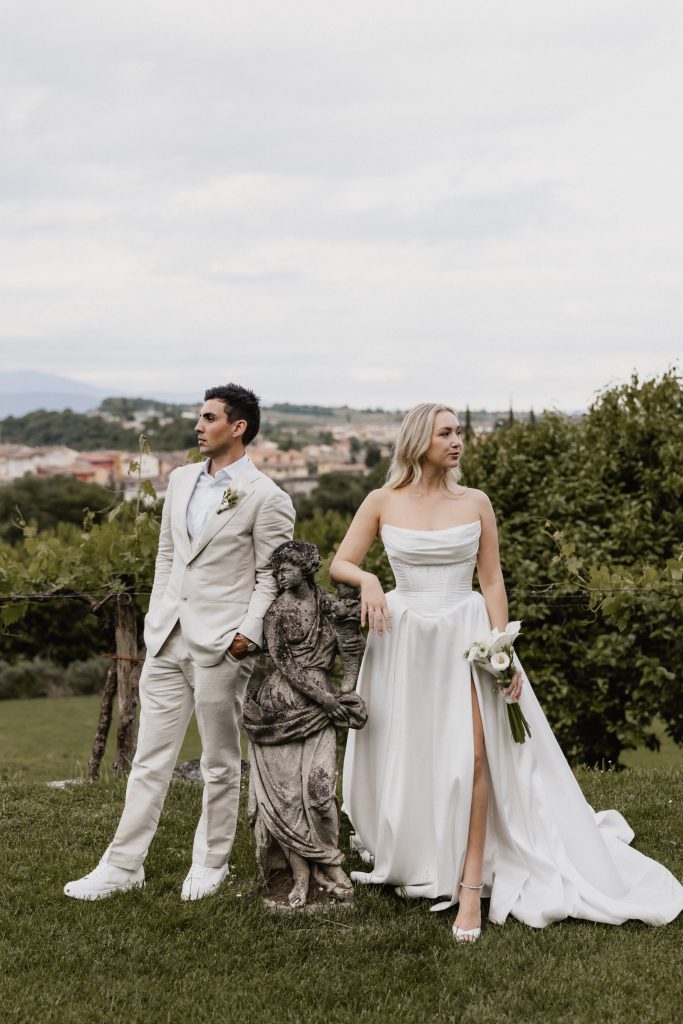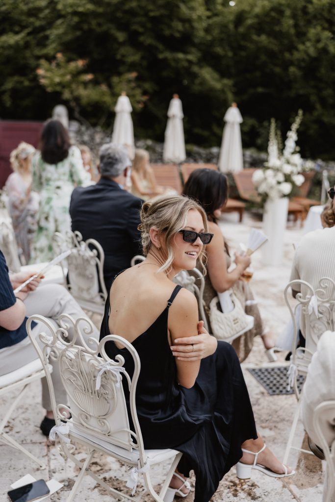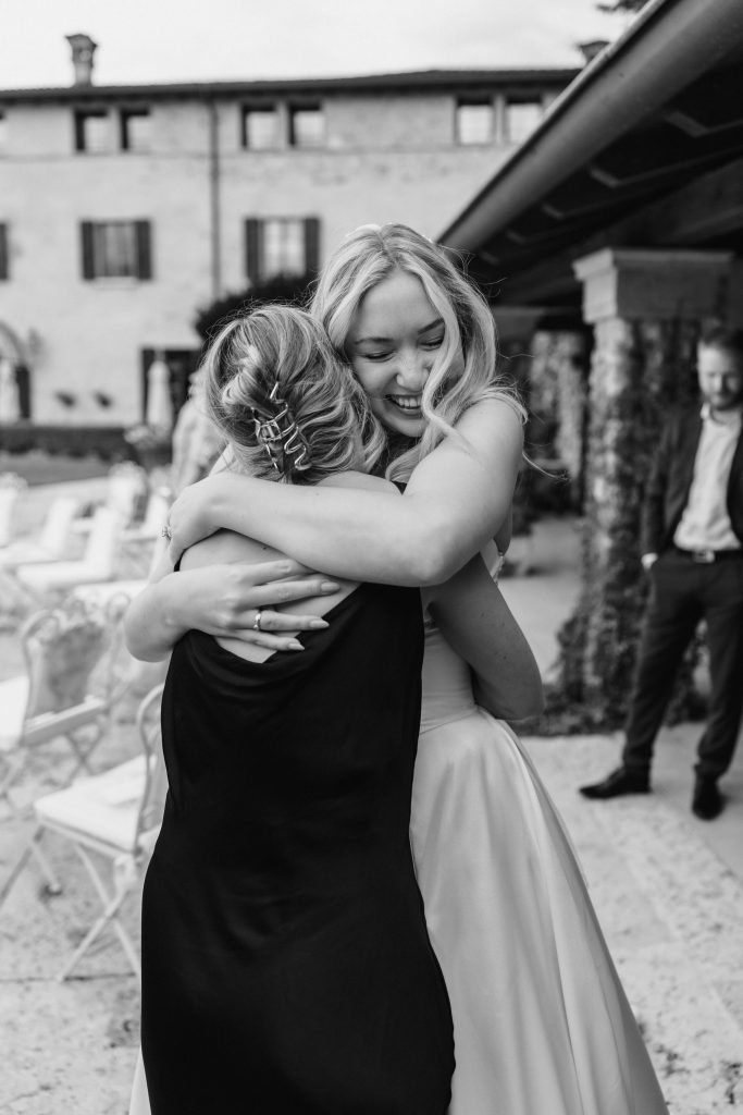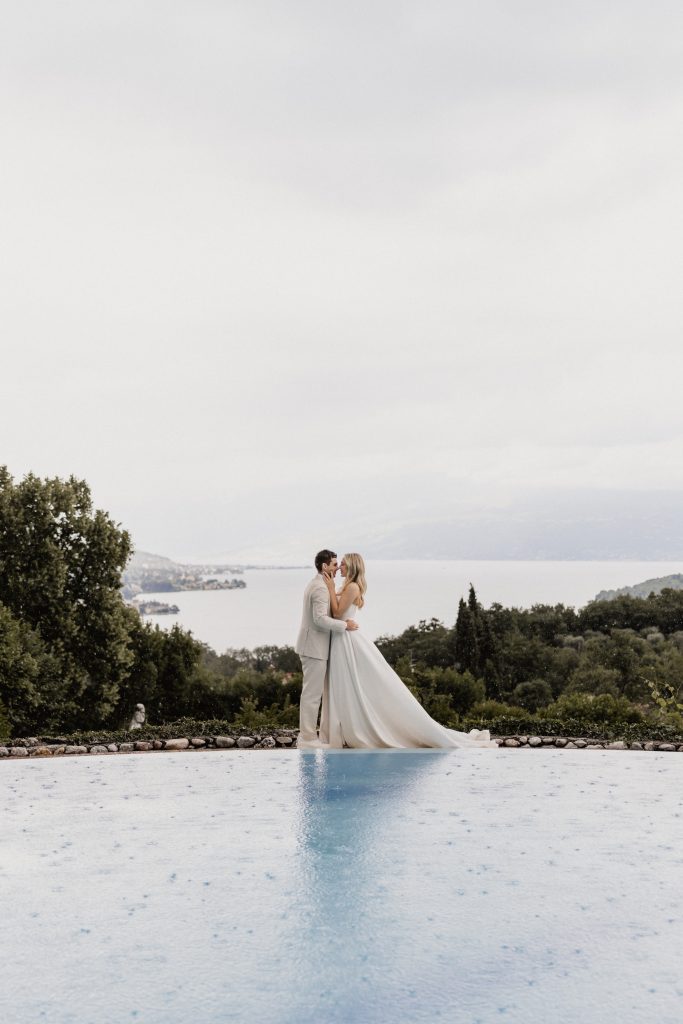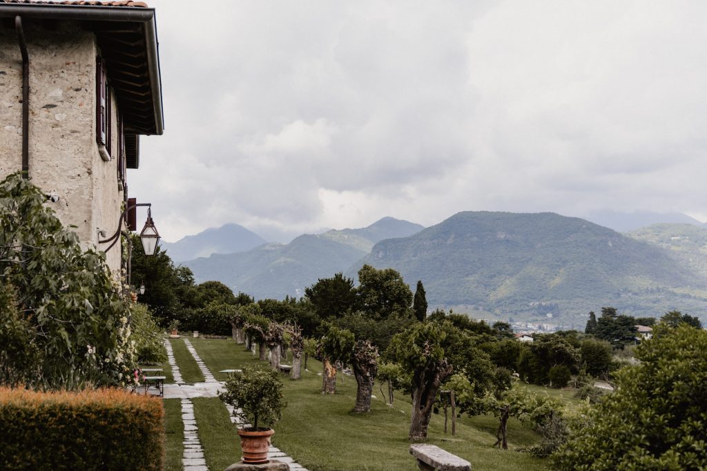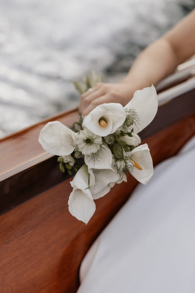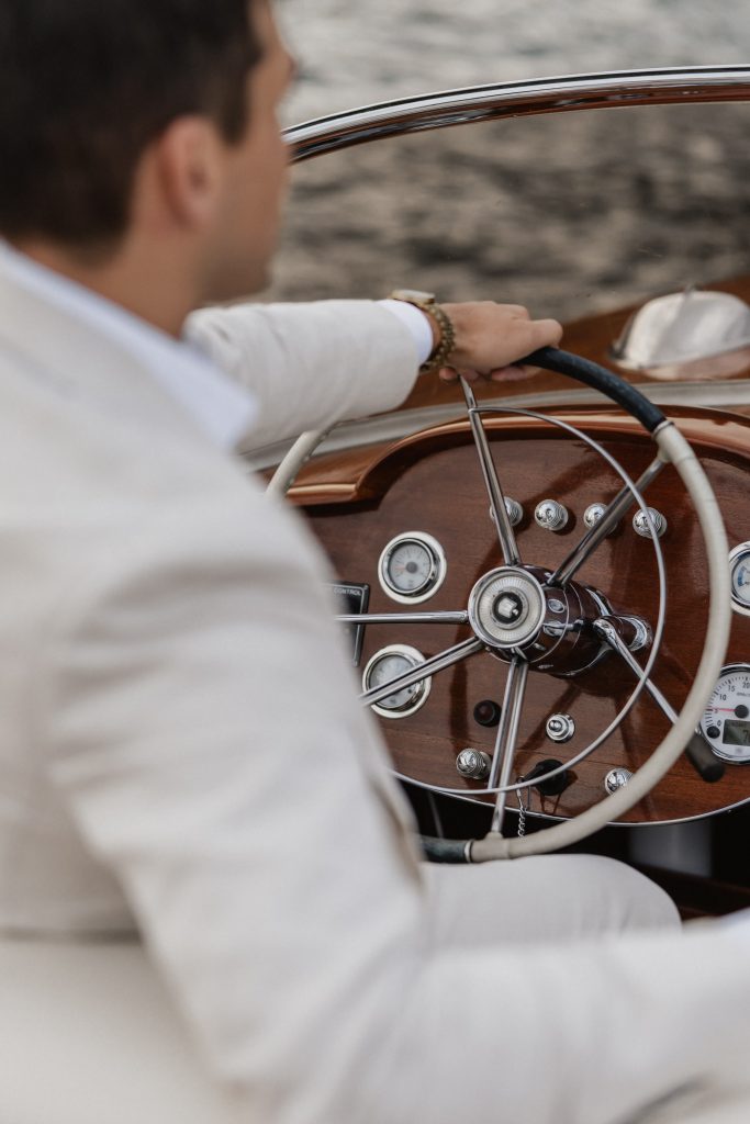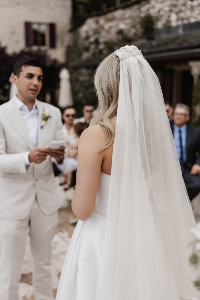 Planned by the incredible team at Somewhere Crazy, every part of the day was intentional but relaxed—from slow, champagne-filled getting ready moments to the golden light spilling over the garden ceremony at Villa Arcadio. Tay got ready with her mum and closest people at A-ROSA Lago di Garda. Hair and makeup by Giulia was everything you’d want for an Italian elopement: glowy skin, soft waves, and a modern editorial edge that still felt completely her. The ceremony took place in Villa Arcadio’s garden—the view, stone walls, and the kind of atmosphere you can’t fake. After the vows, the couple slipped away for a boat ride across Lake Garda as the sun dropped low behind the mountains.