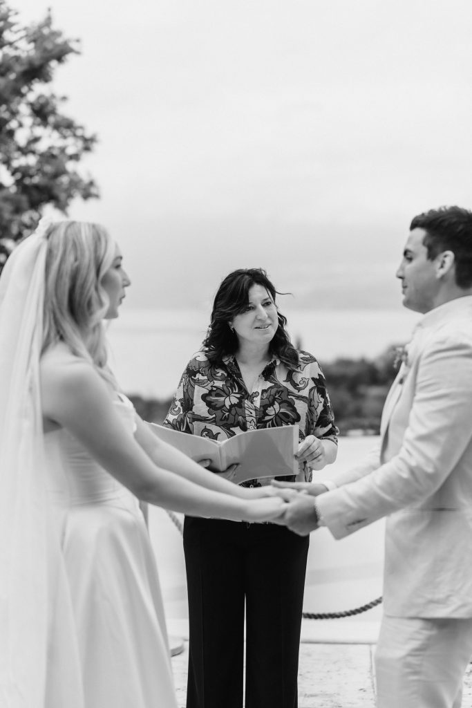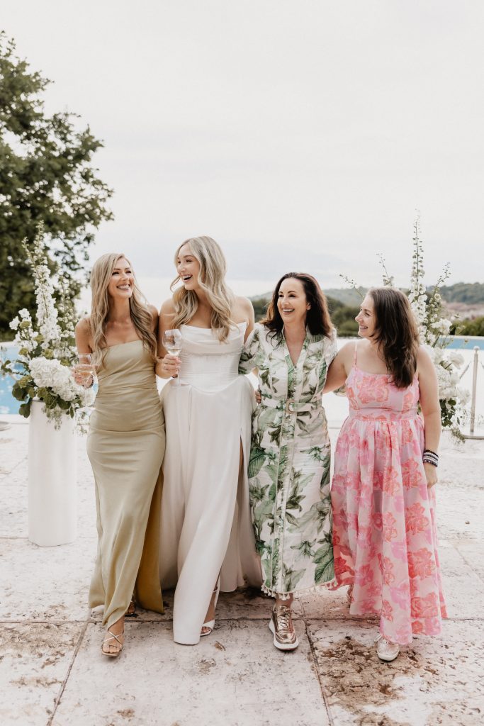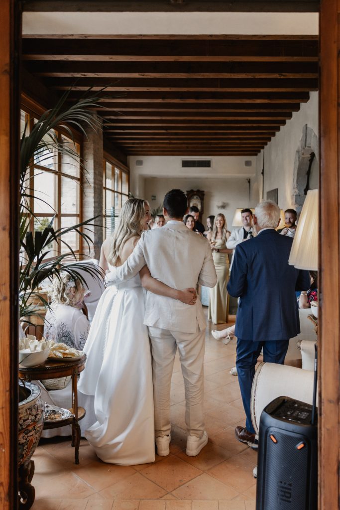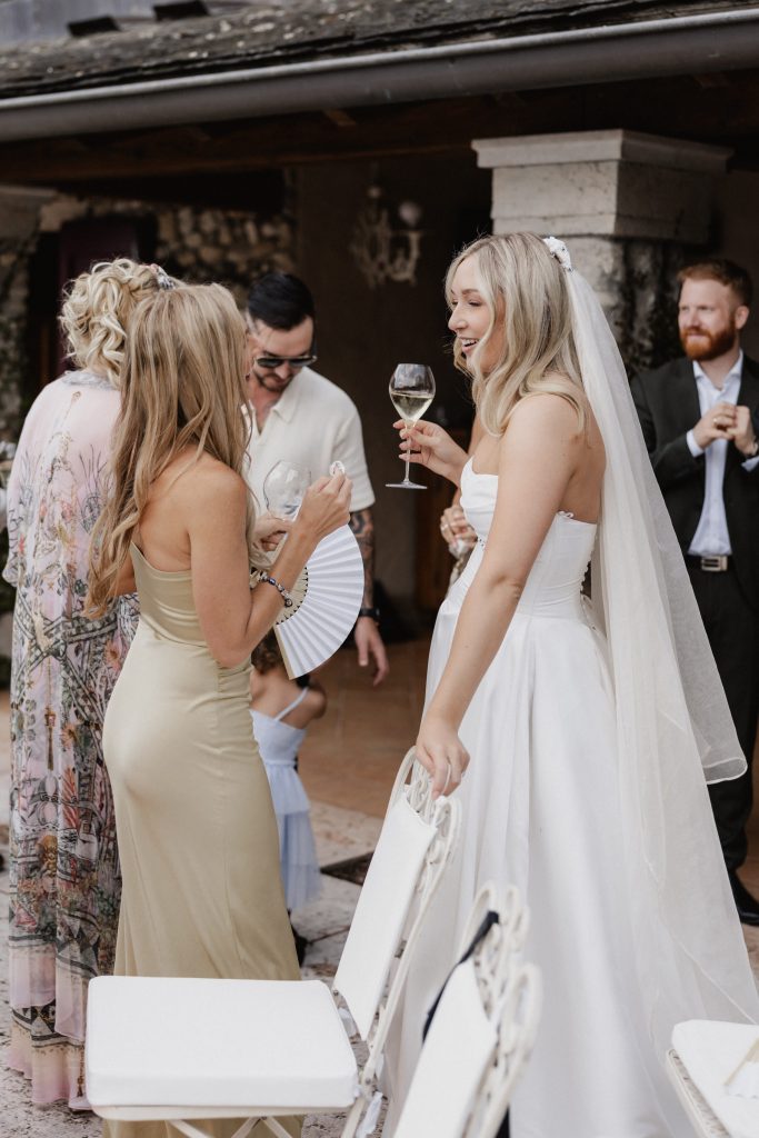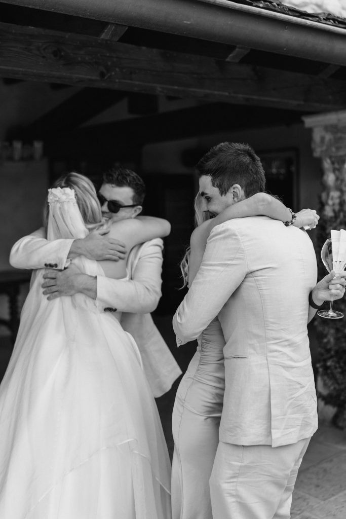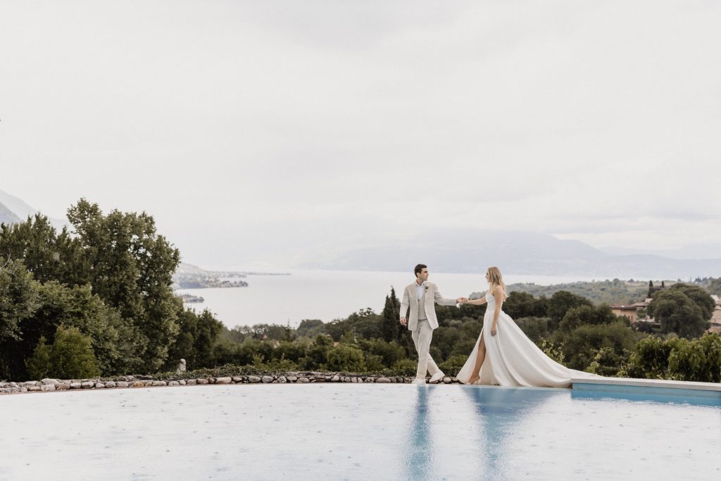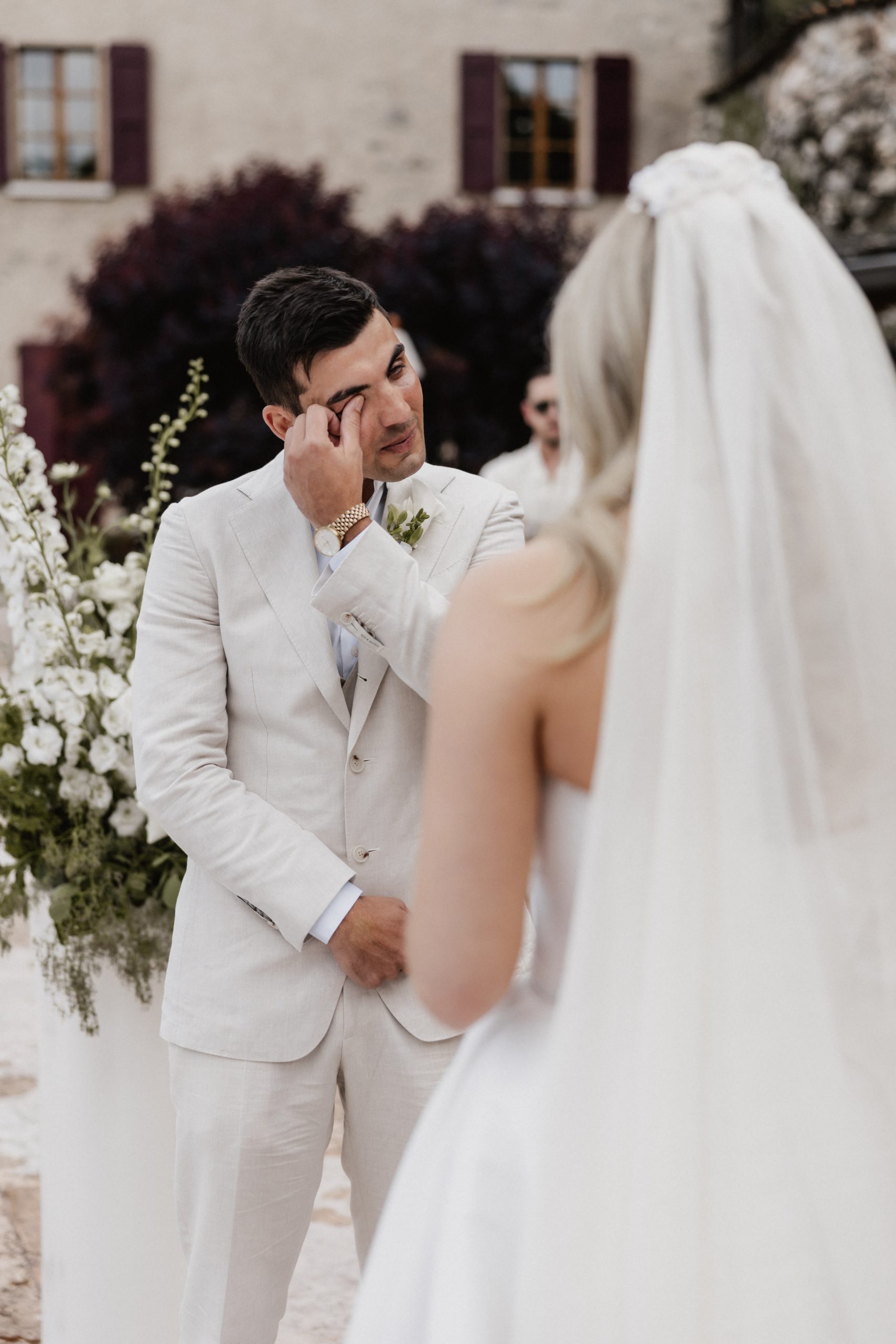 Planned by the incredible team at Somewhere Crazy, every part of the day was intentional but relaxed—from slow, champagne-filled getting ready moments to the golden light spilling over the garden ceremony at Villa Arcadio. Tay got ready with her mum and closest people at A-ROSA Lago di Garda. Hair and makeup by Giulia was everything you’d want for an Italian elopement: glowy skin, soft waves, and a modern editorial edge that still felt completely her. The ceremony took place in Villa Arcadio’s garden—the view, stone walls, and the kind of atmosphere you can’t fake. After the vows, the couple slipped away for a boat ride across Lake Garda as the sun dropped low behind the mountains.