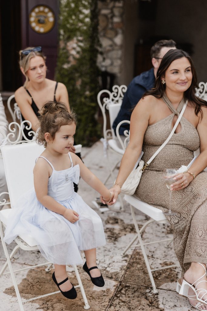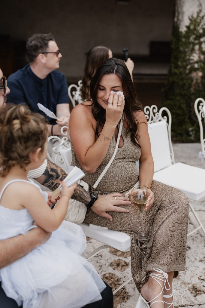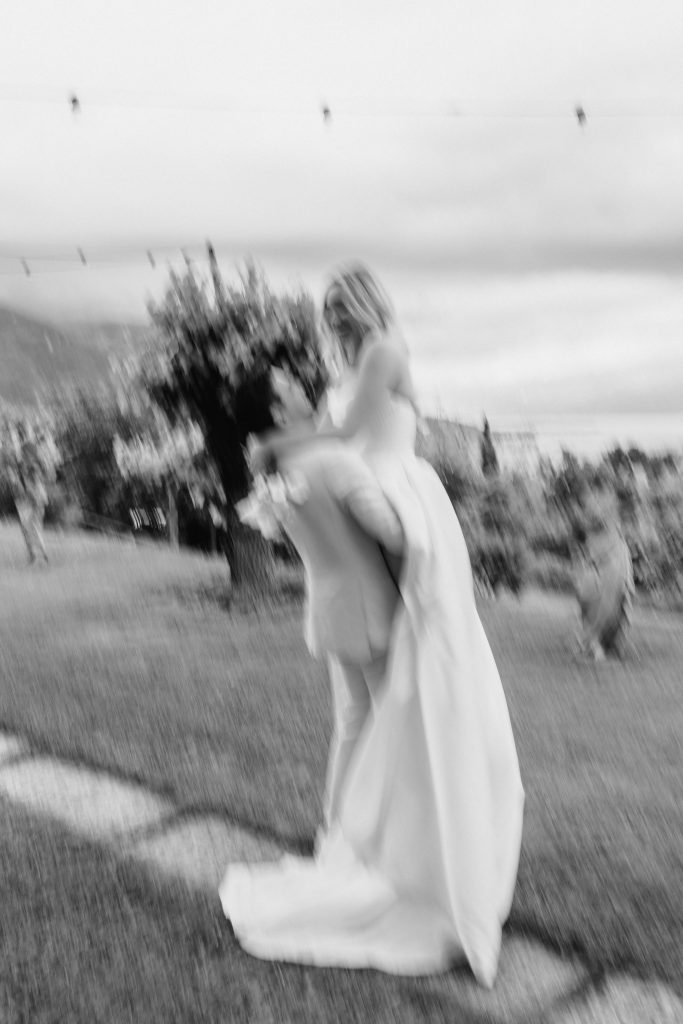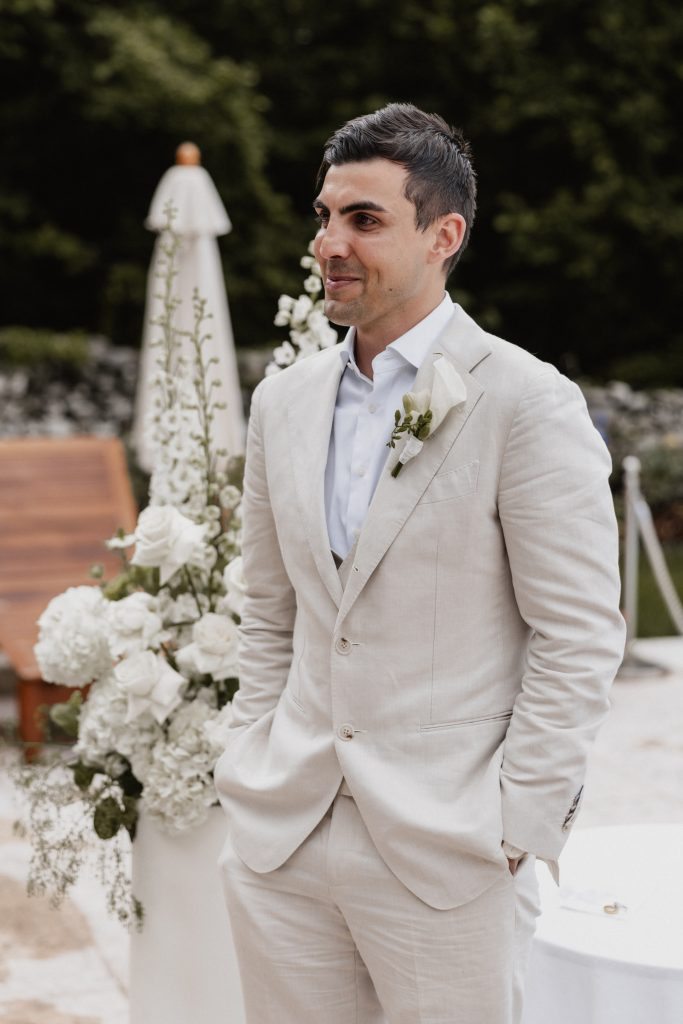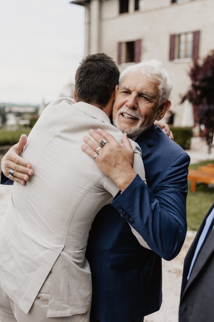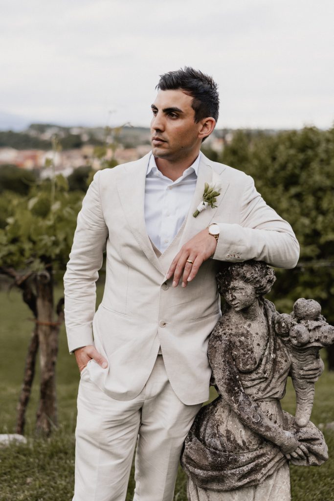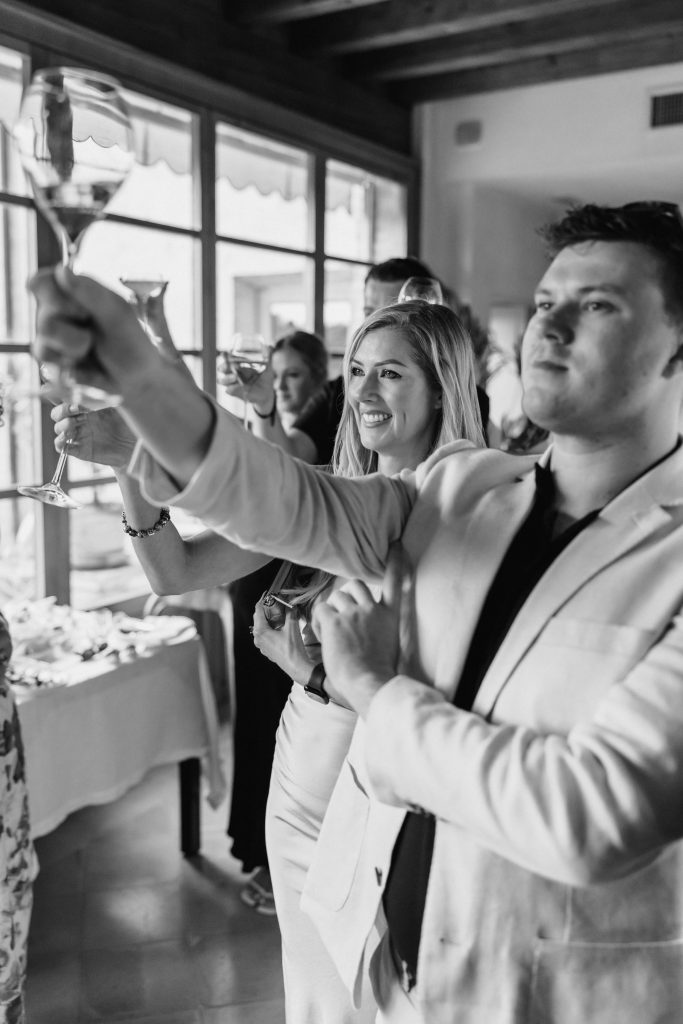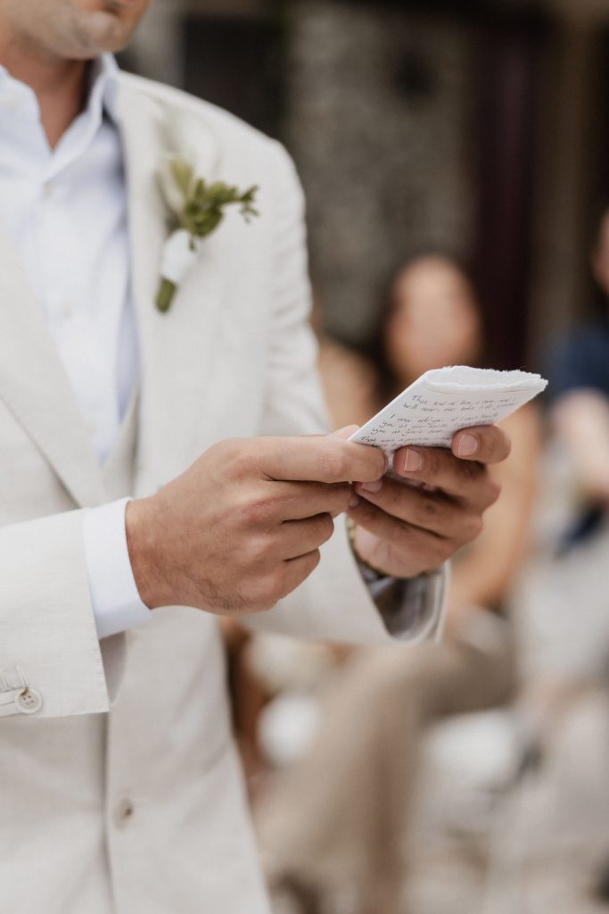 Planned by the incredible team at Somewhere Crazy, every part of the day was intentional but relaxed—from slow, champagne-filled getting ready moments to the golden light spilling over the garden ceremony at Villa Arcadio. Tay got ready with her mum and closest people at A-ROSA Lago di Garda. Hair and makeup by Giulia was everything you’d want for an Italian elopement: glowy skin, soft waves, and a modern editorial edge that still felt completely her. The ceremony took place in Villa Arcadio’s garden—the view, stone walls, and the kind of atmosphere you can’t fake. After the vows, the couple slipped away for a boat ride across Lake Garda as the sun dropped low behind the mountains.