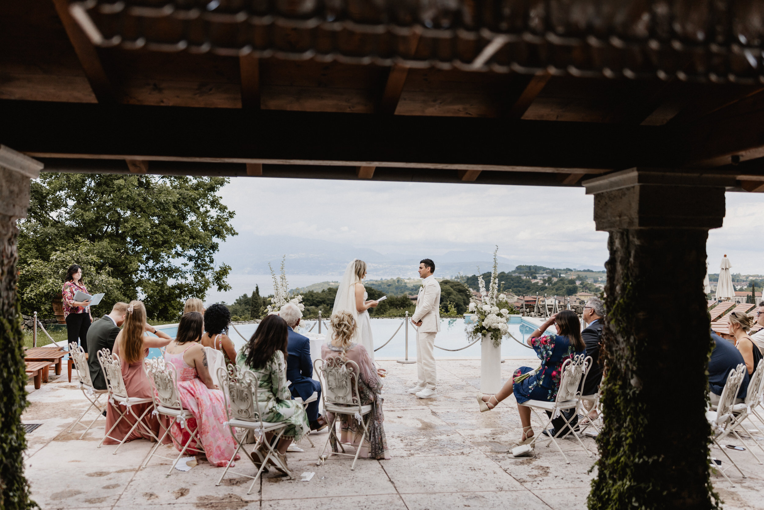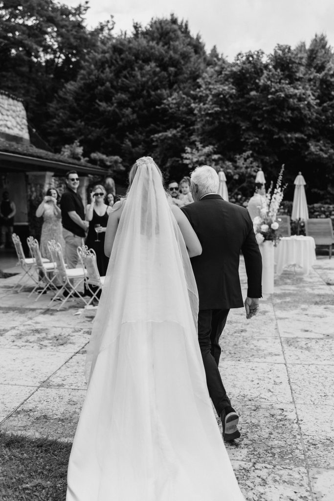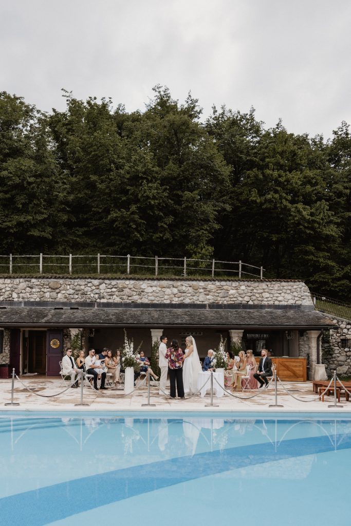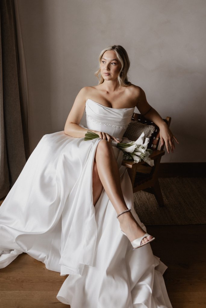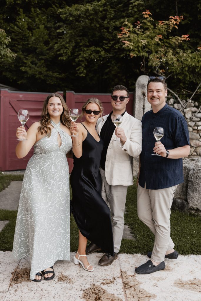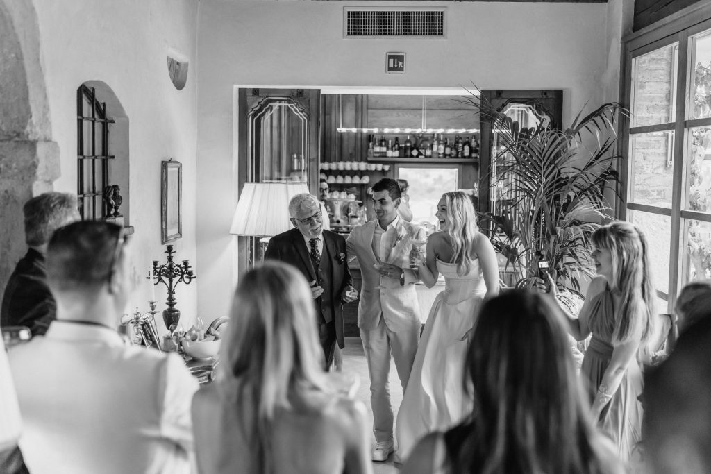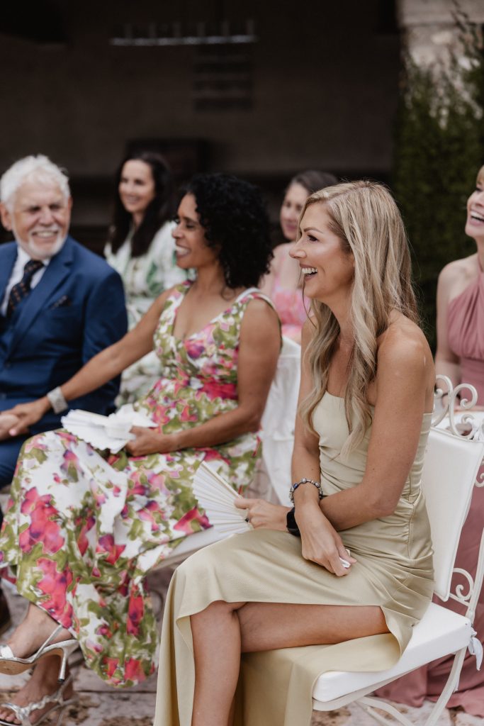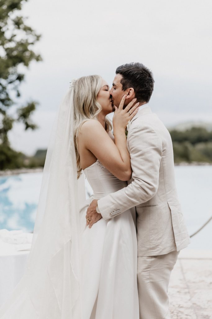 Planned by the incredible team at Somewhere Crazy, every part of the day was intentional but relaxed—from slow, champagne-filled getting ready moments to the golden light spilling over the garden ceremony at Villa Arcadio. Tay got ready with her mum and closest people at A-ROSA Lago di Garda. Hair and makeup by Giulia was everything you’d want for an Italian elopement: glowy skin, soft waves, and a modern editorial edge that still felt completely her. The ceremony took place in Villa Arcadio’s garden—the view, stone walls, and the kind of atmosphere you can’t fake. After the vows, the couple slipped away for a boat ride across Lake Garda as the sun dropped low behind the mountains.