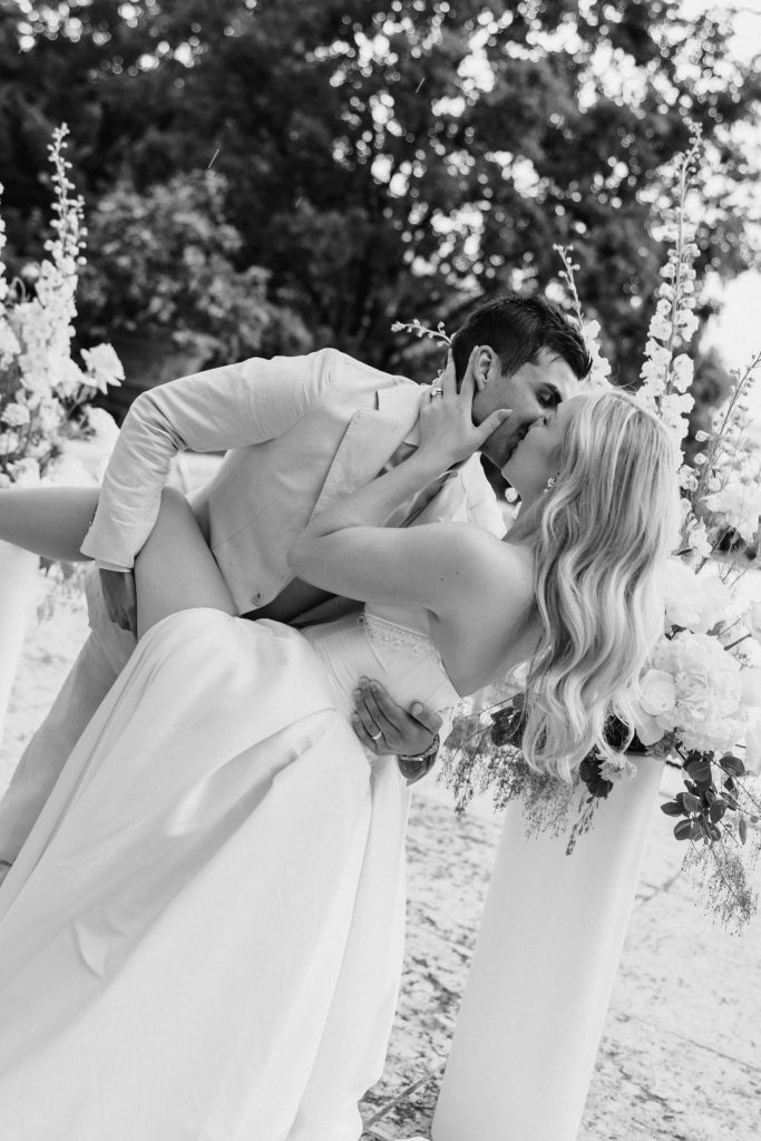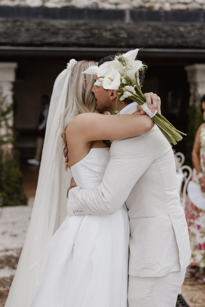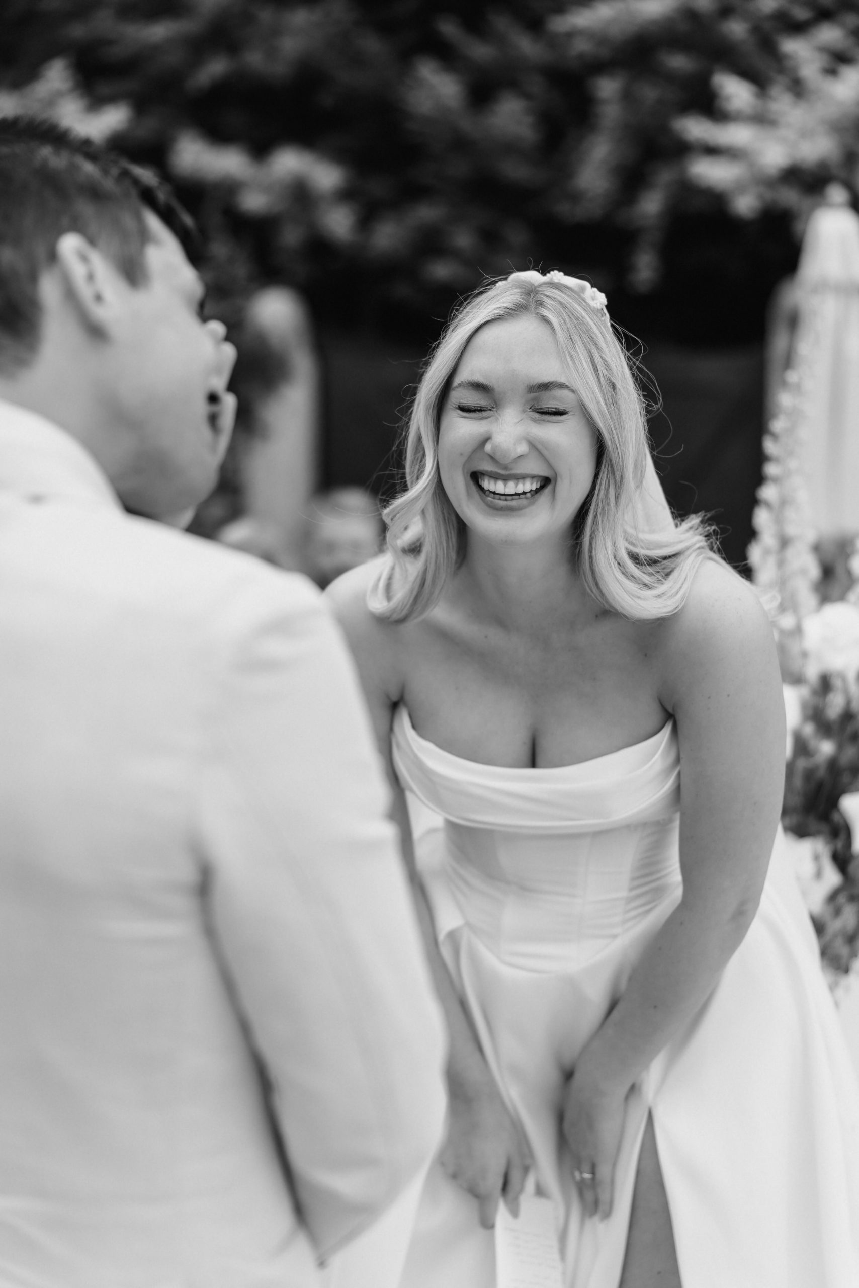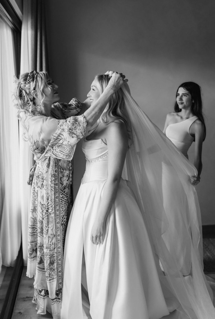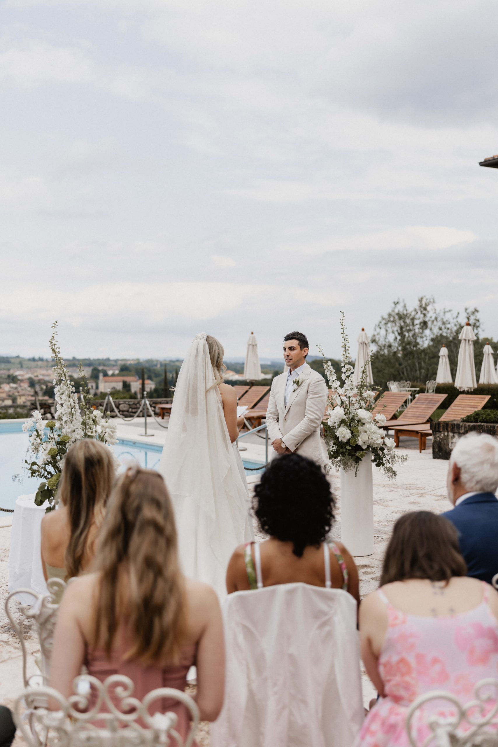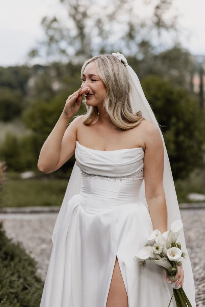 Planned by the incredible team at Somewhere Crazy, every part of the day was intentional but relaxed—from slow, champagne-filled getting ready moments to the golden light spilling over the garden ceremony at Villa Arcadio. Tay got ready with her mum and closest people at A-ROSA Lago di Garda. Hair and makeup by Giulia was everything you’d want for an Italian elopement: glowy skin, soft waves, and a modern editorial edge that still felt completely her. The ceremony took place in Villa Arcadio’s garden—the view, stone walls, and the kind of atmosphere you can’t fake. After the vows, the couple slipped away for a boat ride across Lake Garda as the sun dropped low behind the mountains.